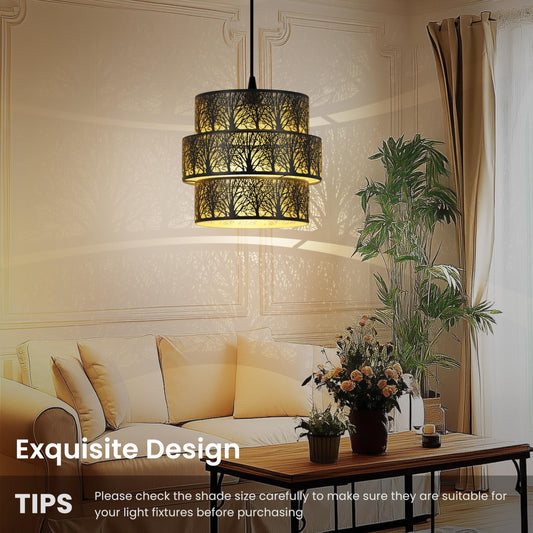3-Tier Drum Metal Lampshade – 11.8"x9" | Chandelier & Pendant Compatible